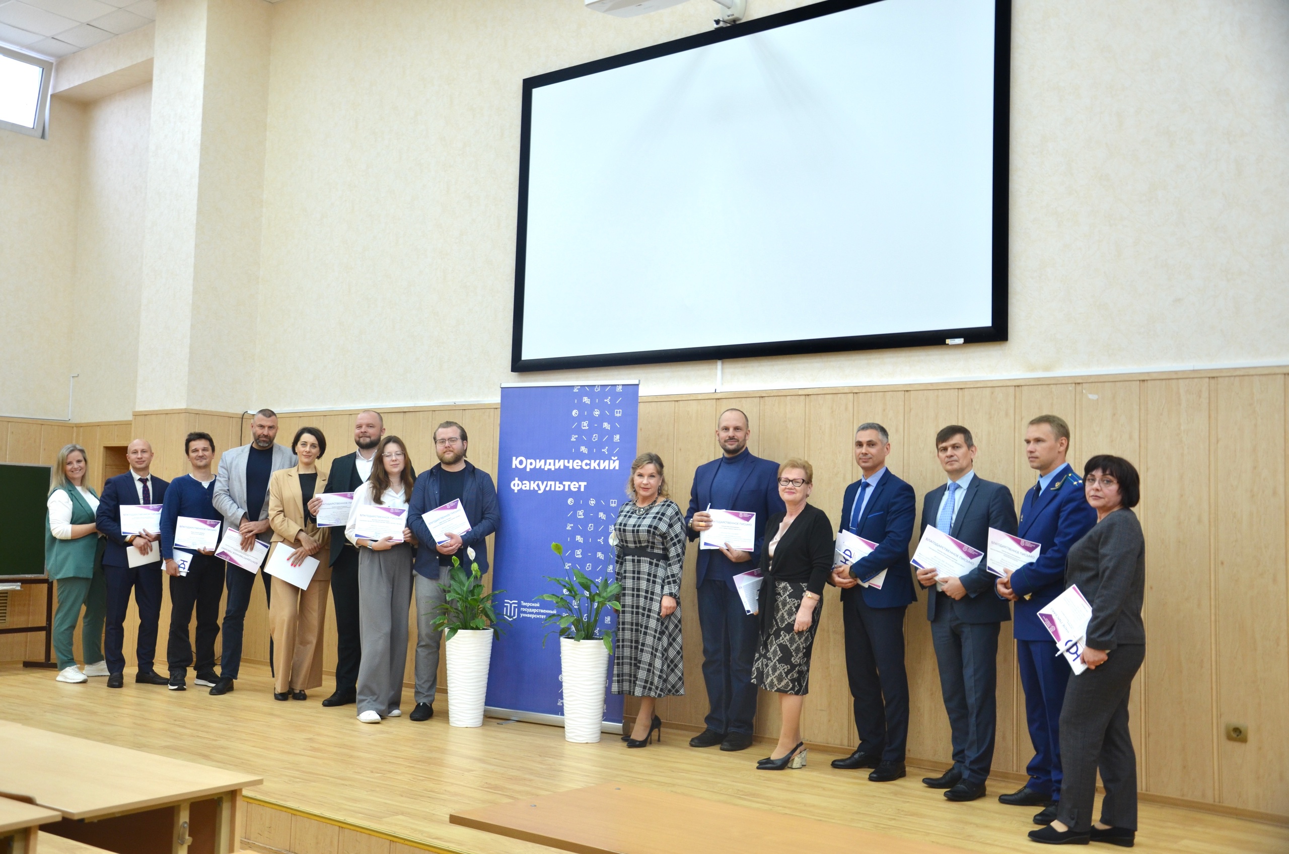В торжественной обстановке декан факультета, доктор юридических наук, профессор, заслуженный юрист РФ Ольга Юрьевна Ильина поблагодарила представителей сферы правоприменения, которые вносят существенный вклад в формирование компетенций обучающихся, принимая активное участие в реализации основных образовательных программ, а также программ дополнительного профессионального образования, будучи наставниками студенческих команд в рамках различных международных и всероссийских конкурсов, принимая обучающихся на стажировку за пределами учебной практики.В расширенном заседании ученого совета приняли участие председатель судебного состава судебной коллегии по гражданским делам Тверского областного суда Валерий Валентинович Цветков и председатель Калининского районного суда Павел Владимирович Осипов, которые получили благодарности от врио ректора ТвГУ Сергея Николаевича Смирнова и юридического факультета.